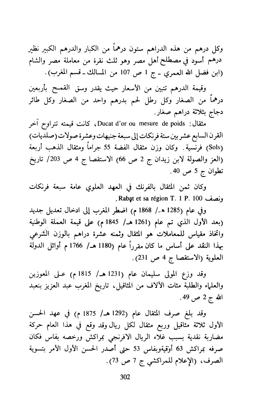 وكان ثمن المثقال بالفرنك في العهد العلوي عامة سبعة فرنكات ونصف 100. Rabat et sa region T. 1 P .