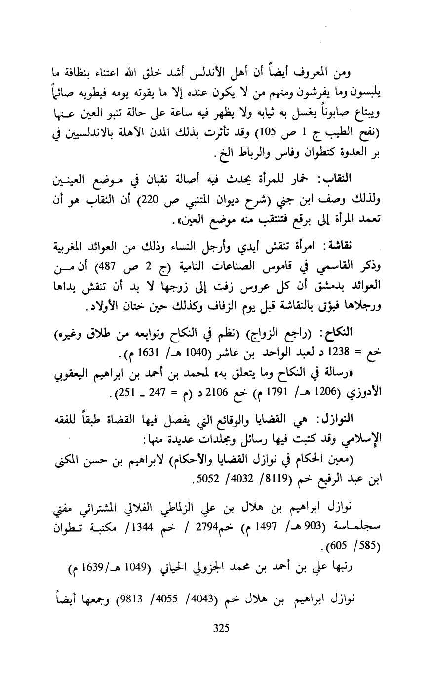النكاح: (راجع الزواج) (نظم في النكاح وتوابعه من طلاق وغيره) خع = 1238 د لعبد الواحد بن عاشر (1040 هـ / 1631 م).
