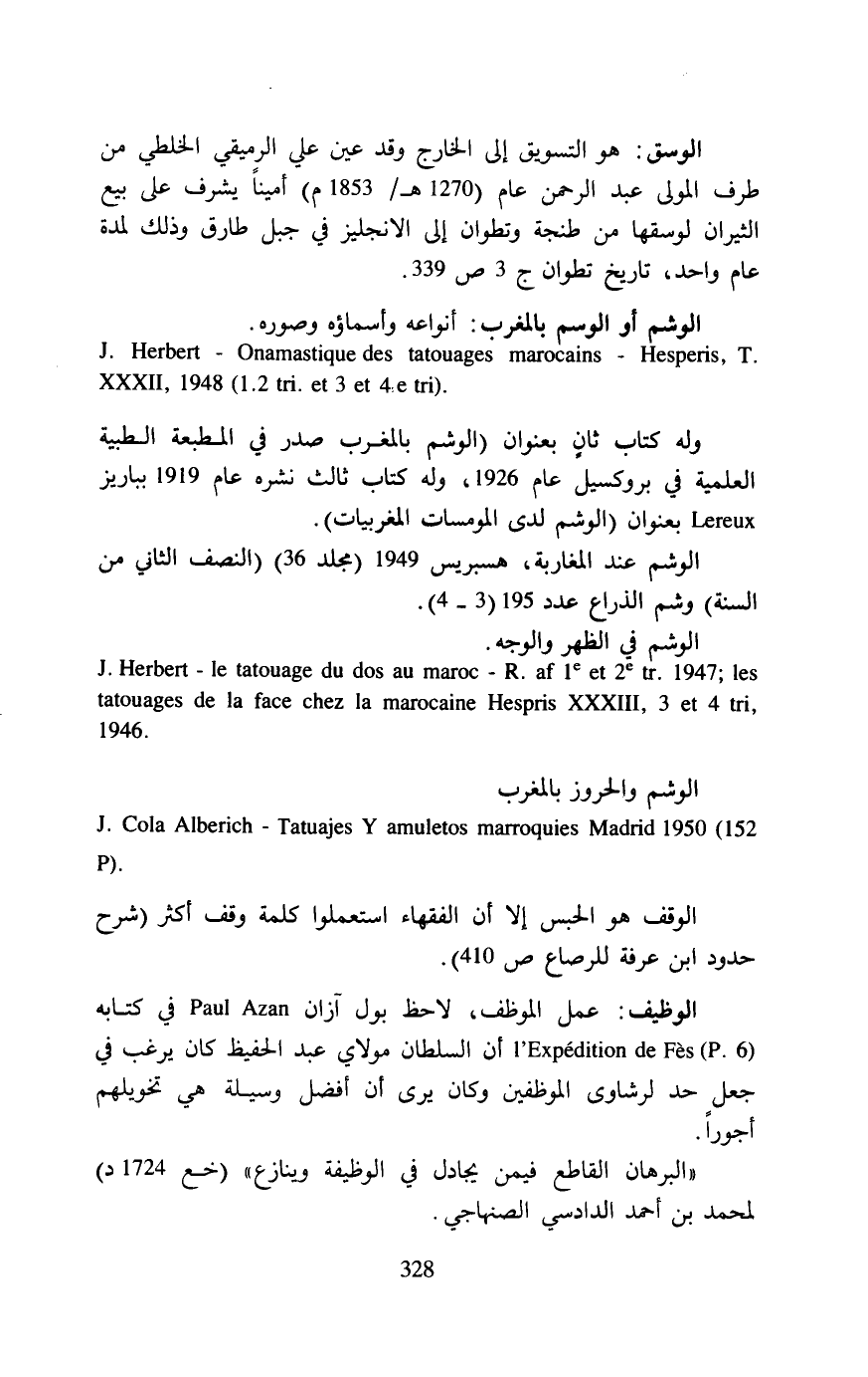 J. Herbert - le tatouage du dos au maroc - R. of le et 2 e tr. 1947; les tatouages de la face chez la marocaine Hespris XXXIII, 3 et 4 tri, 1946.