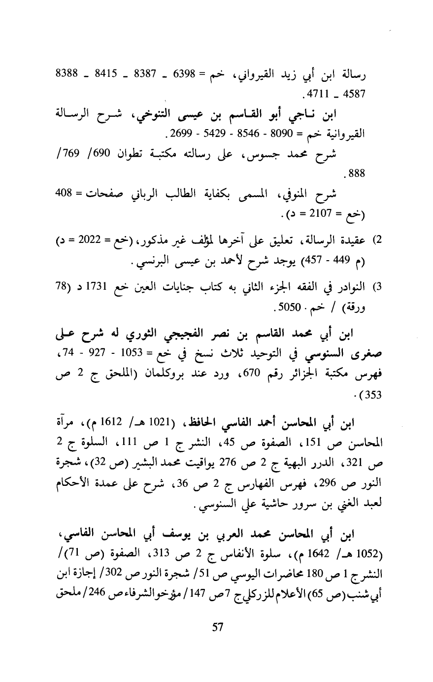 ابن ناجي أبو القاسم بن عيسى التنوخي، شرح الرسالة القيروانية خم = 8090 - 8546 - 5429 - 2699.