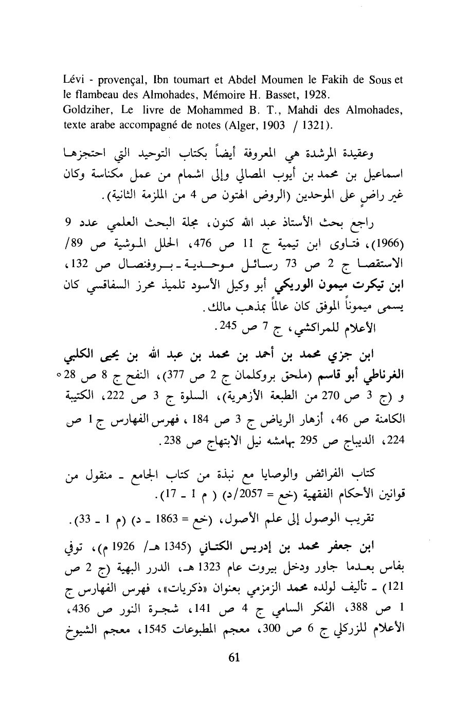 Levi - provencal, Ibn toumart et Abdel Moumen le Fakih de Sous et Le flambeau des Almohades, Memoire H. Basset, 1928.