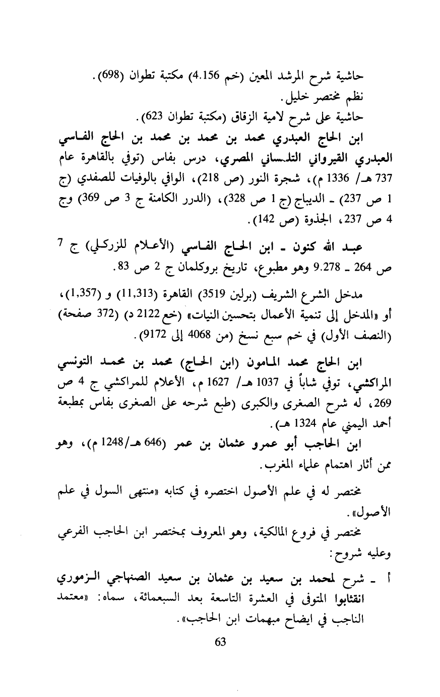 ابن الحاج العبدري محمد بن محمَّد بن محمَّد بن الحاج الفاسي العبدري القيرواني التلمساني المصري، درس بفاس (توفي بالقاهرة عام 737 هـ/ 1336 م)، شجرة النور (ص 218)، الوافي بالوفيات للصفدي (ج 1 ص 237) -الديباج (ج 1 ص 328)، "الدرر الكامنة ج 3 ص 369) وج 4 ص 237، الجذوة (ص 142).