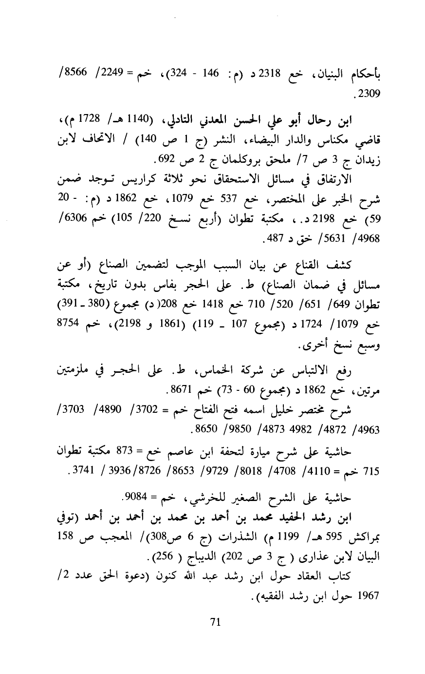 حاشية على شرح ميارة لتحفة ابن عاصم خع = 873 مكتبة تطوان 715 خم = 4110/ 4708 / 8018/ 9729/ 8653/ 8726 /3936/ 3741.