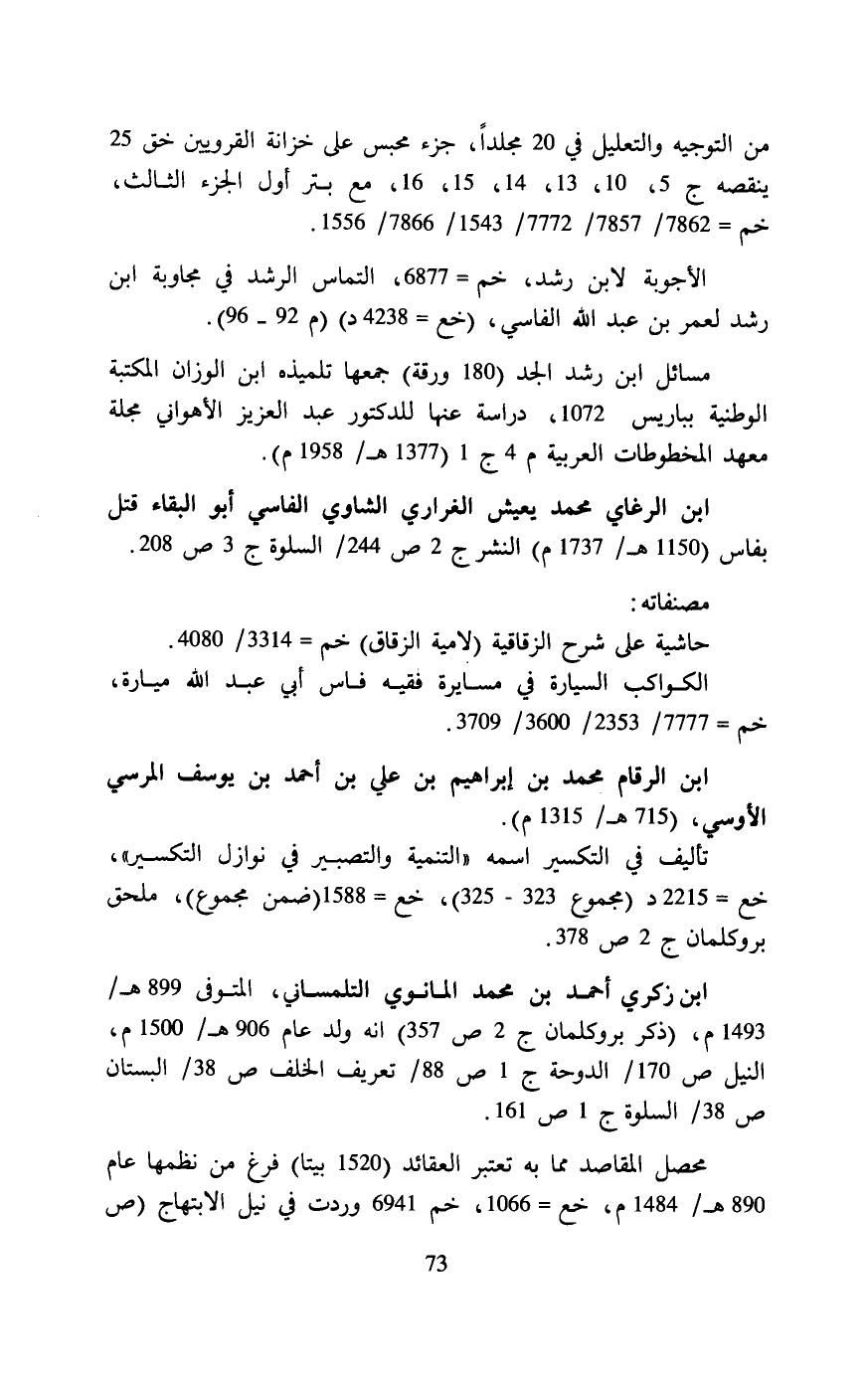 من التوجيه والتعليل في 20 مجلدًا، جزء محبس على خزانة القرويين خق 25 ينقصه ج 5، 10، 13، 14، 15، 16، مع بتر أول الجزء الثالث، خم = 7862/ 7857/ 7772/ 1543/ 7866/ 1556.