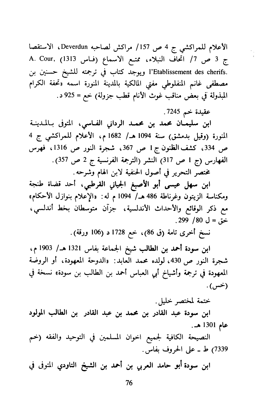 ابن سليمان محمد بن محمد الرداني الفاسي، المتوفى بالمدينة المنورة (وقيل بدمشق) سنة 1094 هـ/ 1682 م، الأعلام للمراكشي ج 4 ص 334، كشف الظنون ج 1 ص 367، شجرة النور ص 1316، فهرس الفهارس (ج 1 ص 317) النشر (الترجمة الفرنسية ج 2 ص 357).
