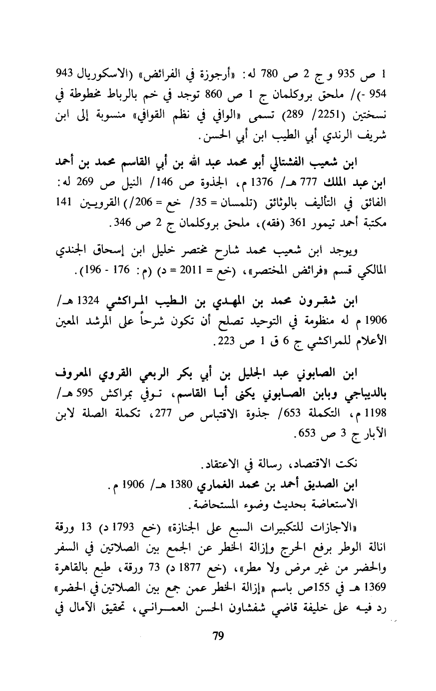 ويوجد ابن شعيب محمد شارح مختصر خليل ابن إسحاق الجندي المالكي قسم "فرائض المختصر"، (خع = 2011 = د) (م: 176 - 196).