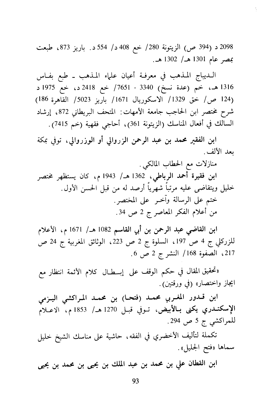 ابن فقيرة أحمد الرِباطي، 1362 هـ/ 1943 م، كان يستظهر مختصر خليل ويتقاضى عليه مرتبا شهريًا أرصد له من قبل الحسن الأول.