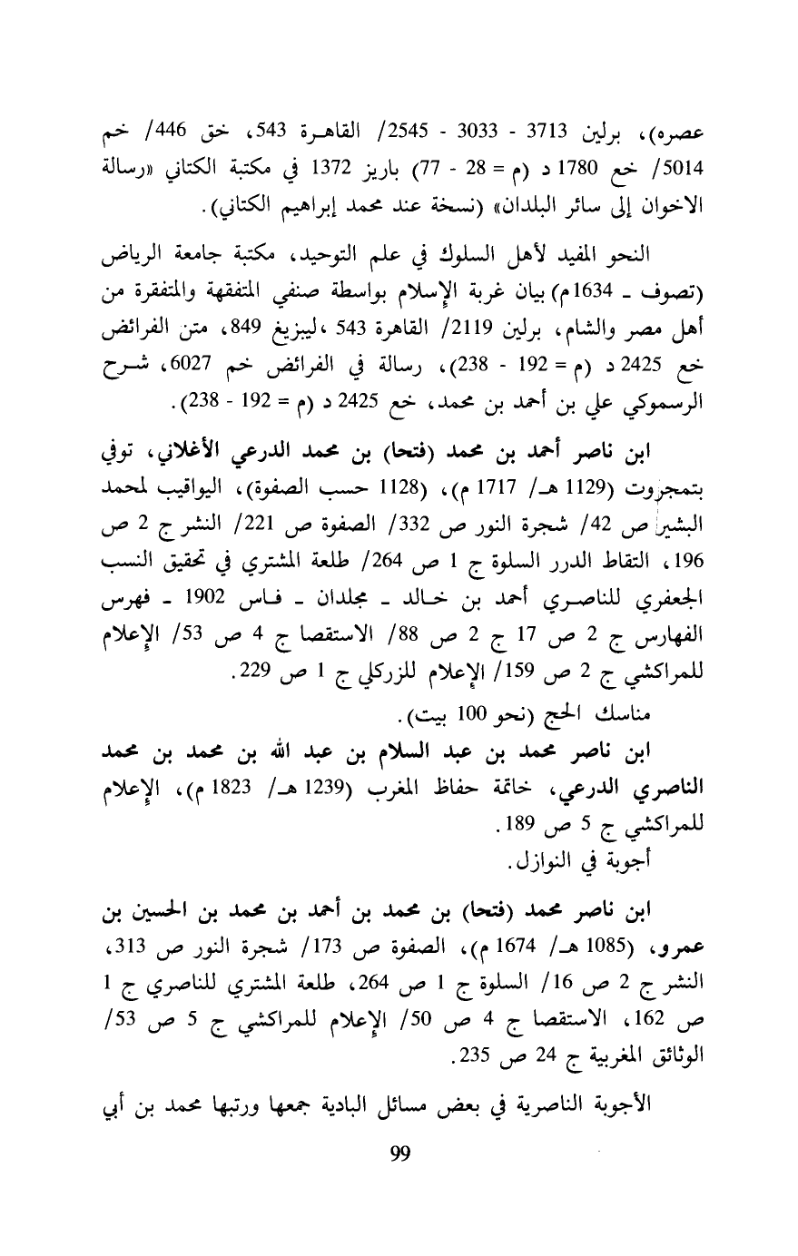 ابن ناصر محمَّد بن عبد السلام بن عبد الله بن محمَّد بن محمَّد الناصري الدرعي، خاتمة حفاظ المغرب (1239 هـ/ 1823 م)، الِإعلام للمراكشي ج 5 ص 189.