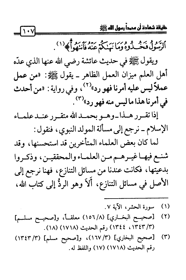 إذا تقرر هذا - وهو بحمد الله متقرر عند علماء الإسلام - نرجع إلى مسألة المولد النبوي، فنقول: لما كان بعض العلماء المتأخرين قد استحسنها، وقد شنع فيها غيرهم من العلماء والمحققين وذكروا بدعيتها، فكانت عندنا من مسائل التنازع، فهنا نرجع إلى الأصل في مسائل التنازع، ألا وهو الرد إلى كتاب الله،
