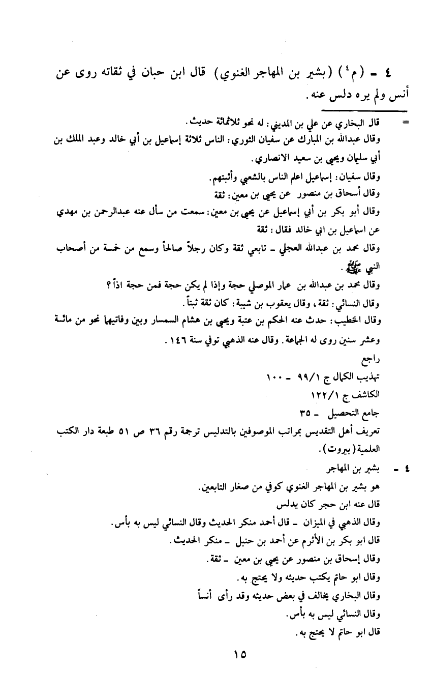 4 - (م) (بشير بن المهاجر الغنوي) قال بن حبان في ثقاته روى عن أنس ولم يره دلس عنه.