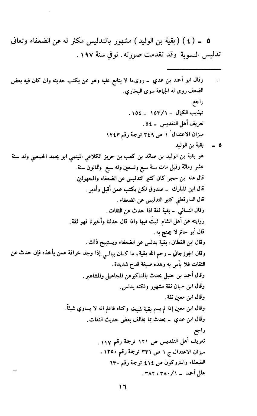 5 - (4) (بقية بن الوليد) مشهور بالتدليس مكثر له عن الضعفاء وتعاني تدليس التسوية وقد تقدمت صورته. توفى سنة 197.