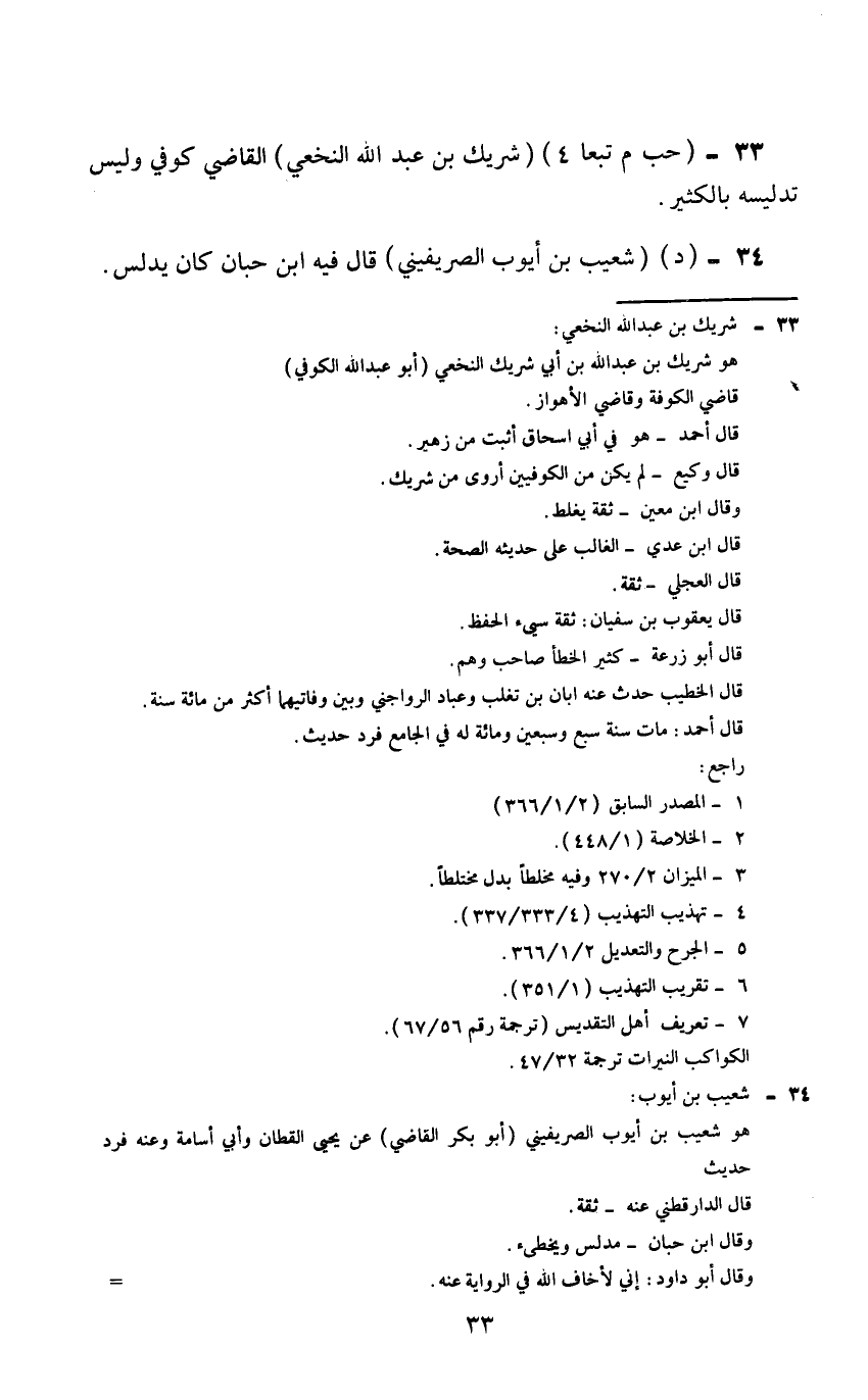 33 - خت م متابعة عو شريك بن عبد الله النخعي القاضي كوفي وليس تدليسه بالكثير.