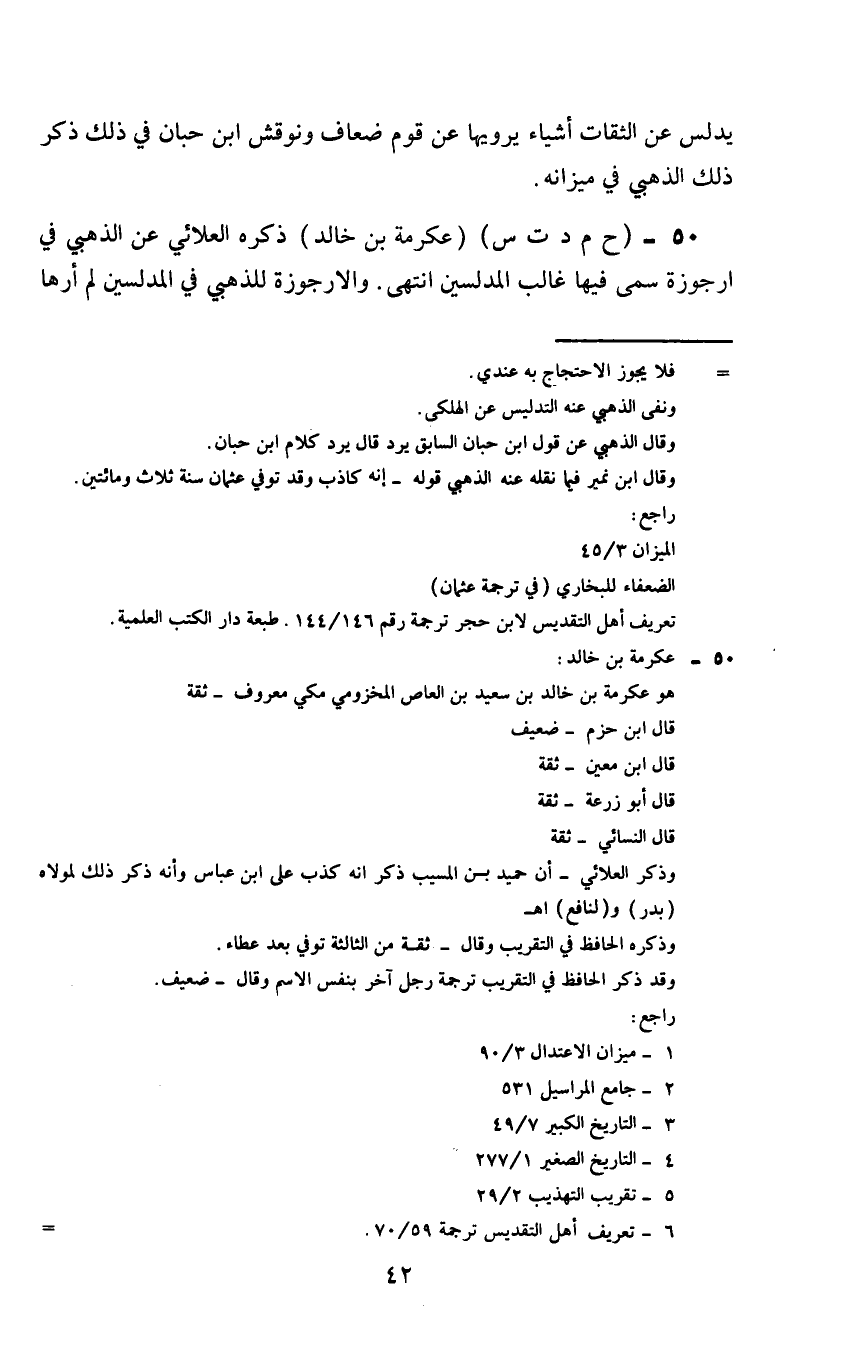 50 - خ م د ت س عكرمة بن خالد ذكره العلائي عن الذهبي في أرجوزة سمى فيها غالب المدلسين انتهى والاجوزة للذهبي في المدلسين لم ارها