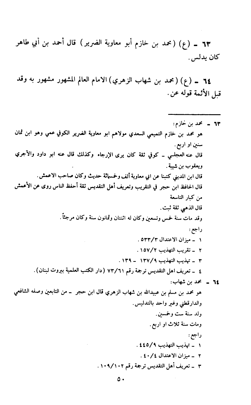 63 - ع محمد بن خازم أبو معاوية الضرير قال أحمد بن أبي طاهر كان يدلس.