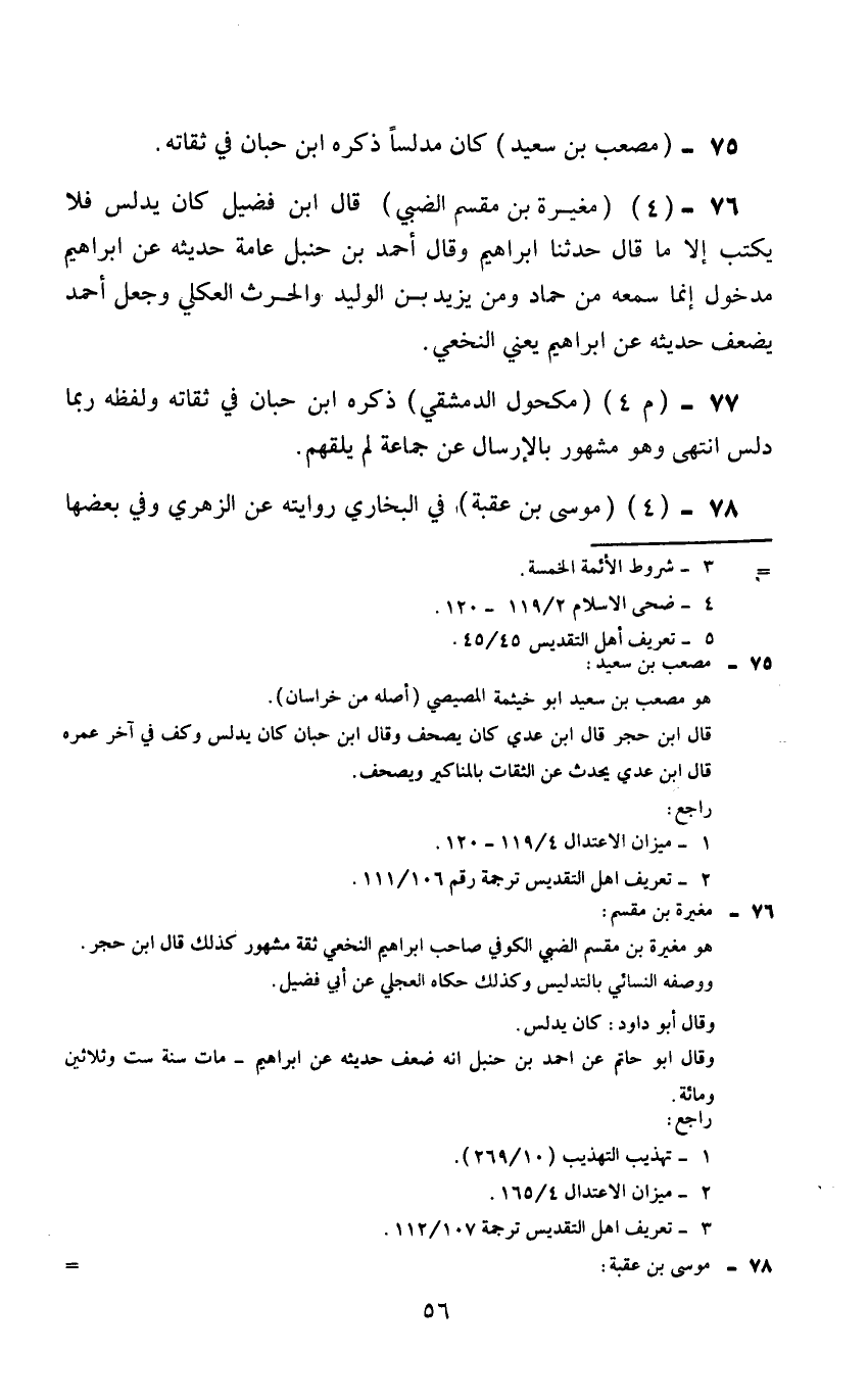 76 - ع مغيرة بن مقسم الضبي قال بن فضيل كان يدلس فلا يكتب الا ما قال حدثنا إبراهيم وقال أحمد بن حنبل عامة حديثه عن إبراهيم مدخول إنما سمعه من حماد ويزيد بن الوليد والحارث العكلي وجعل أحمد يضعف حديثه عن إبراهيم يعني النخعي.