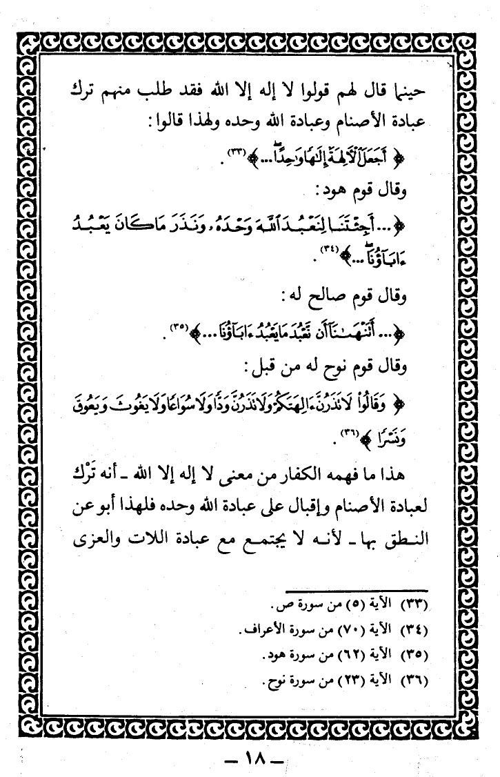 هذا ما فهمه الكفّار من معنى: لا إله إلاّ الله؛ أنّه ترك لعبادة الأصنام، وإقبالٌ على عبادة الله وحده، فلهذا أَبَوا النّطق بها، لأنّه لا يجتمع مع عبادة اللات والعزّى