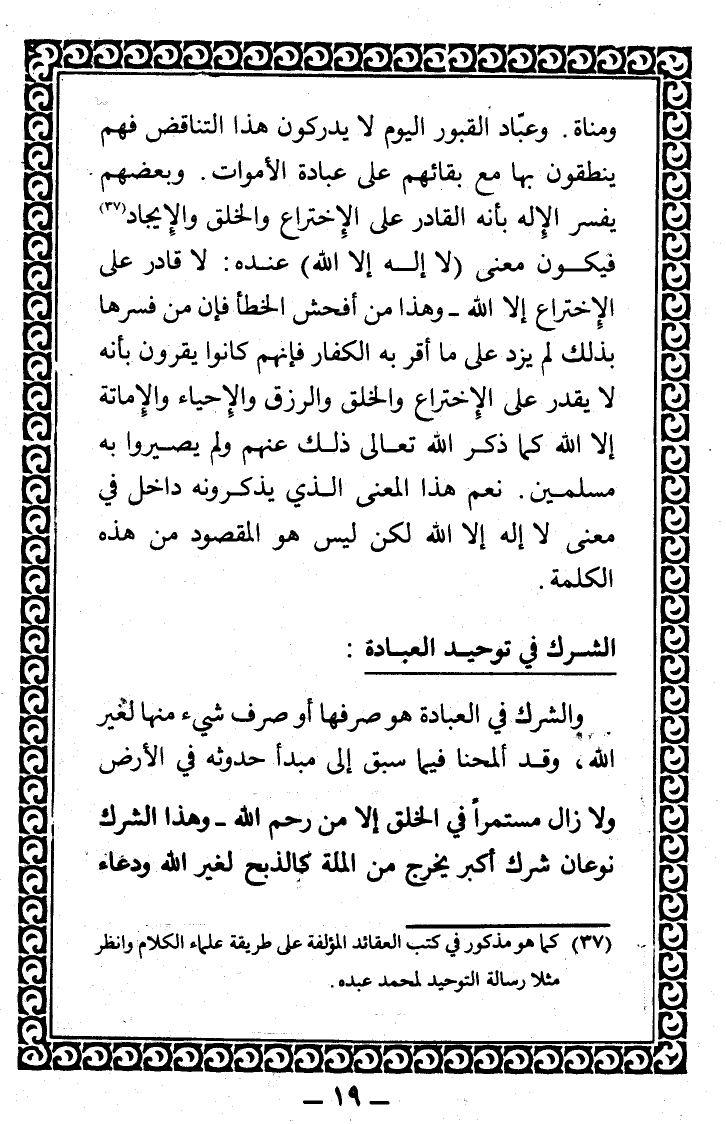 1 كما هو مذكور في كتب العقائد المؤلفة على طريقة علماء الكلام، وانظر مثلاً: "رسالة التّوحيد" لمحمد عبده.