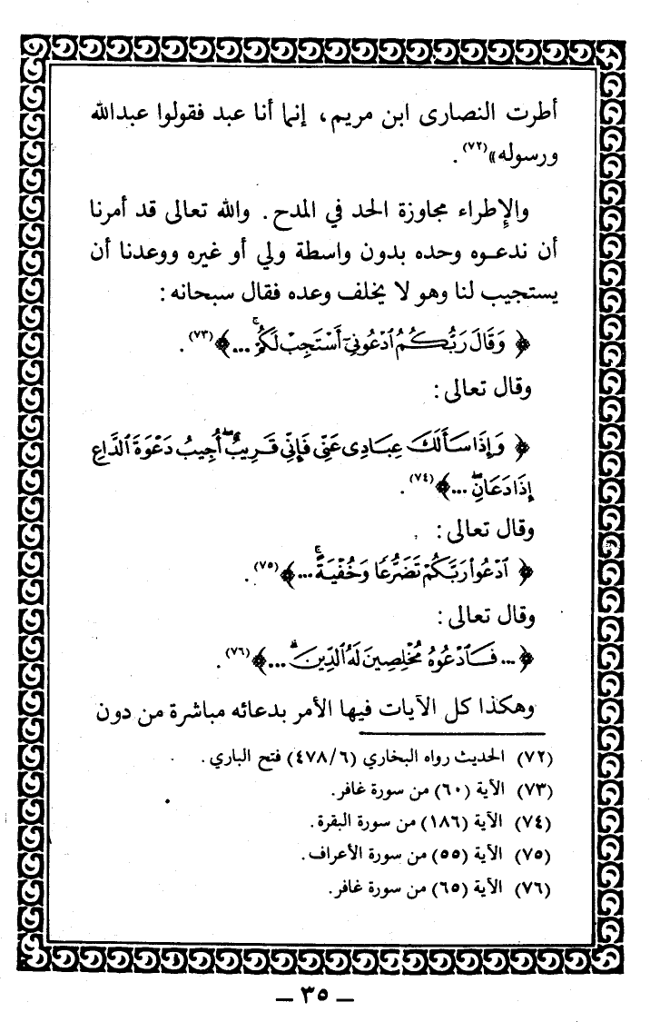 أطرت النّصارى ابن مريم، إنّما أنا عبد فقولوا عبد الله ورسوله" 1.