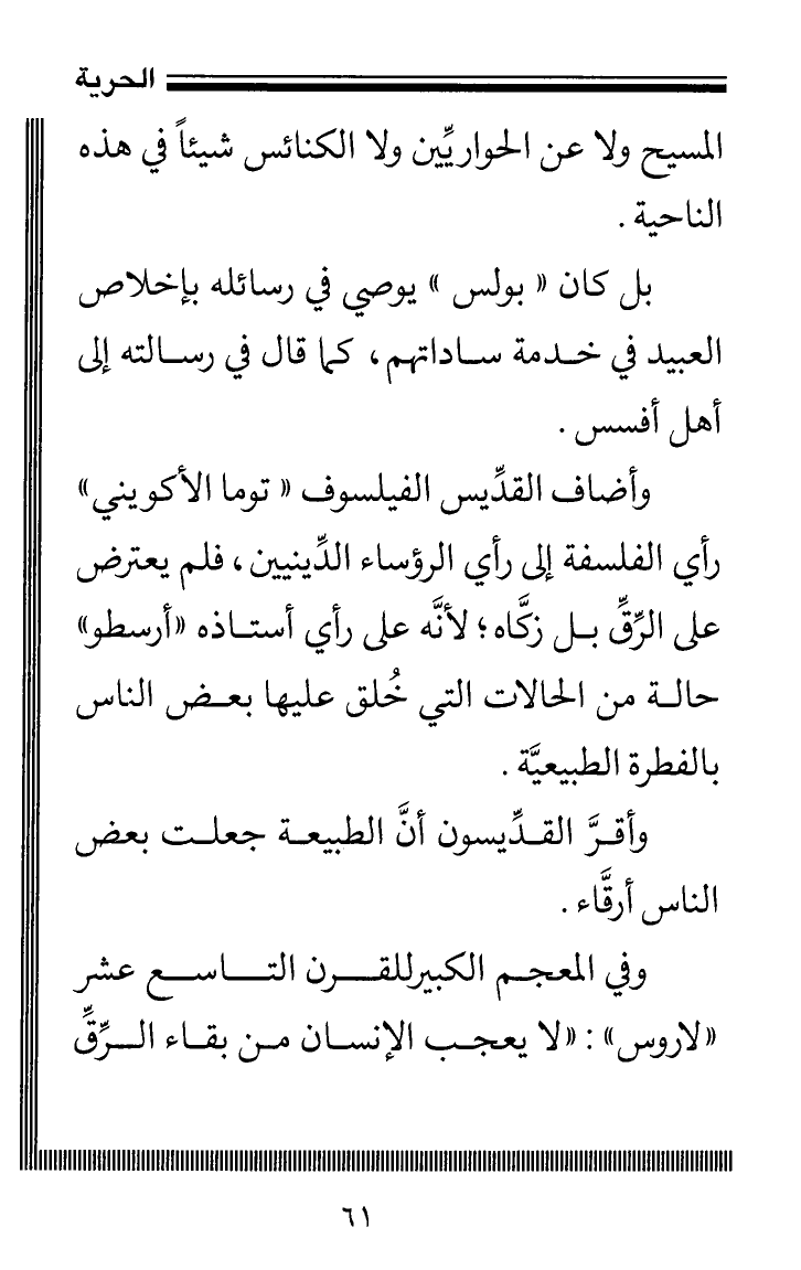 بل كان " بولس " يوصي في رسائله بإخلاص العبيد في خدمة ساداتهم، كما قال في رسالته إلى أهل أفسس.