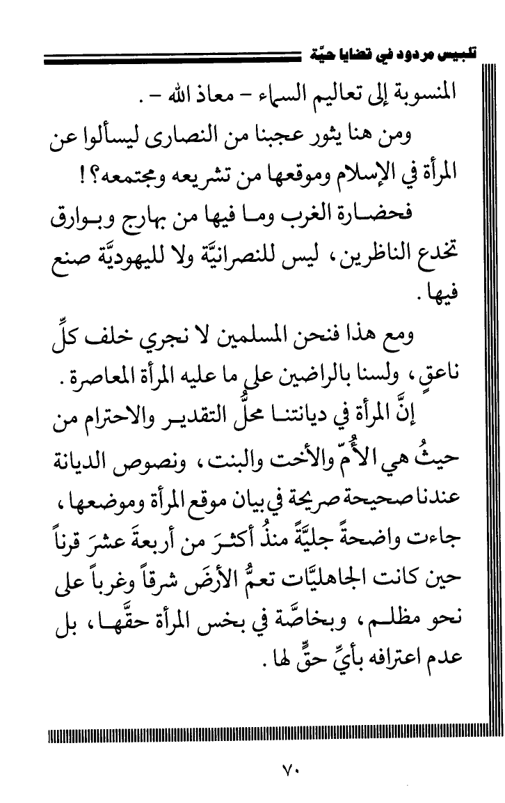 ومع هذا فنحن المسلمين لا نجري خلف كلِّ ناعقٍ، ولسنا بالراضين على ما عليه المرأة المعاصرة.