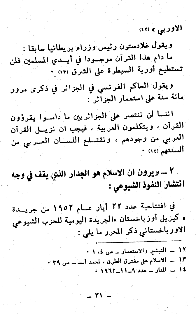 (¬13) " الإسلام على مفترق الطرق " لمحمد أسد: ص 39.