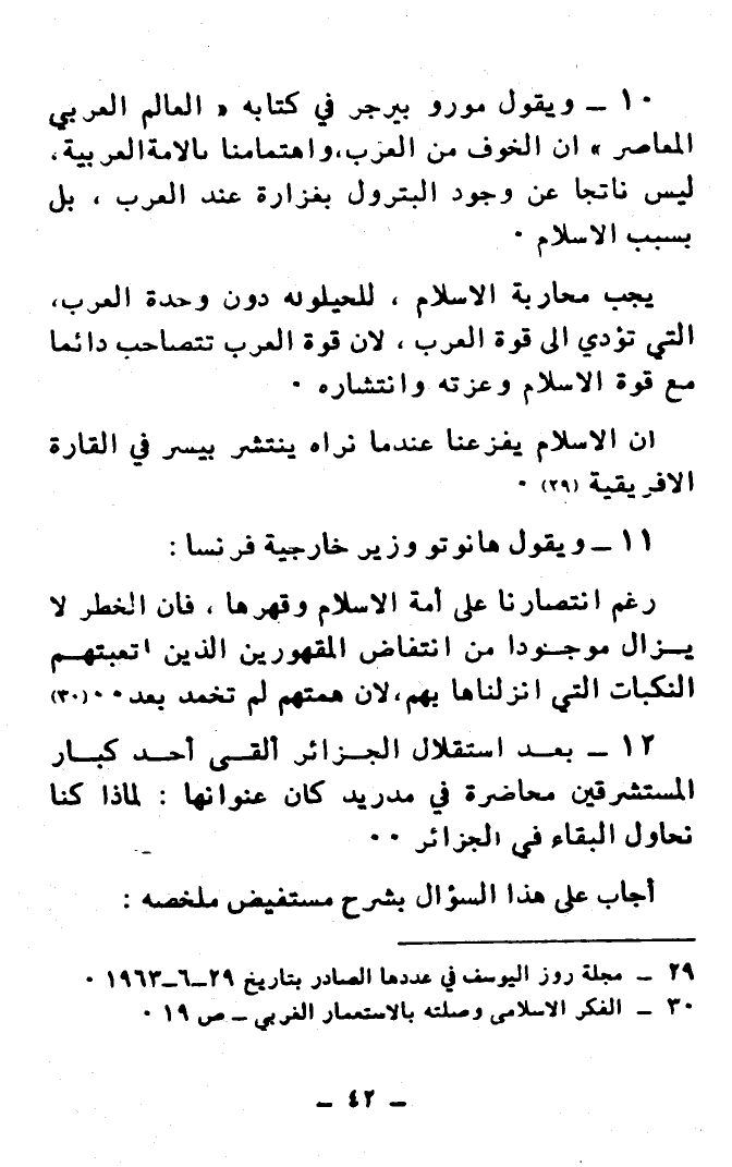 (¬30) " الفكر الإسلامي وصلته بالاستعمار الغربي ": ص 19.