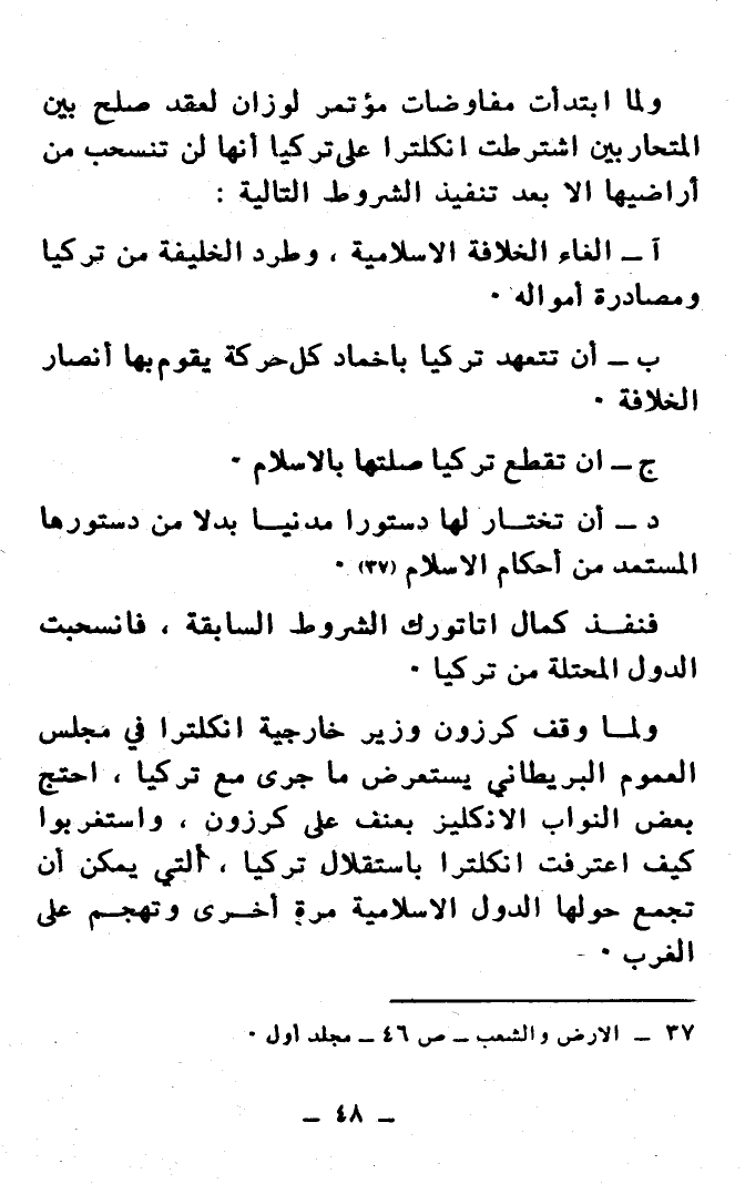 ب - أن تتعهد تركيا بإخماد كل حركة يقوم بها أنصار الخلافة.