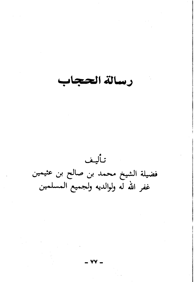 رسالة الحجاب تأليف فضيلة الشيخ محمد بن صالح بن عثيمين غفر الله له ولوالديه ولجميع المسلمين