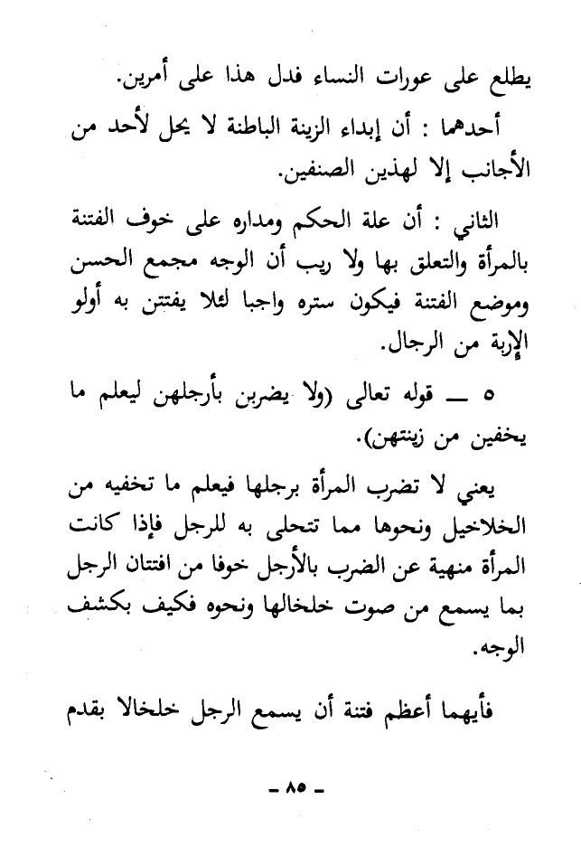5 - قوله تعالى: {وَلَا يَضْرِبْنَ بِأَرْجُلِهِنَّ لِيُعْلَمَ مَا يُخْفِينَ مِنْ زِينَتِهِنَّ} [النور: 31]