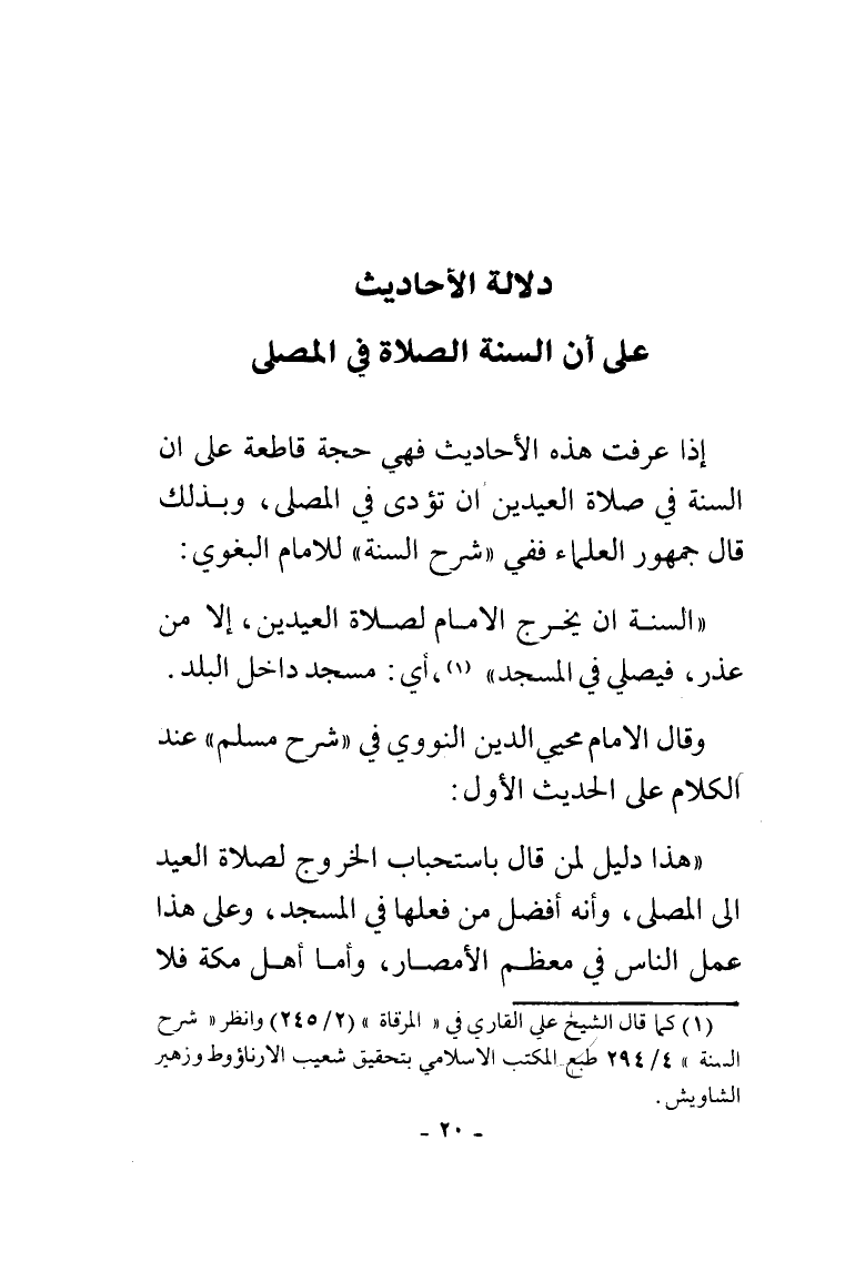 إذا عرفت هذه الأحاديث فهي حجة قاطعة على أن السنة في صلاة العيدين أن تؤدى في المصلى وبذلك قال جمهور العلماء ففي "شرح السنة" للإمام البغوي: