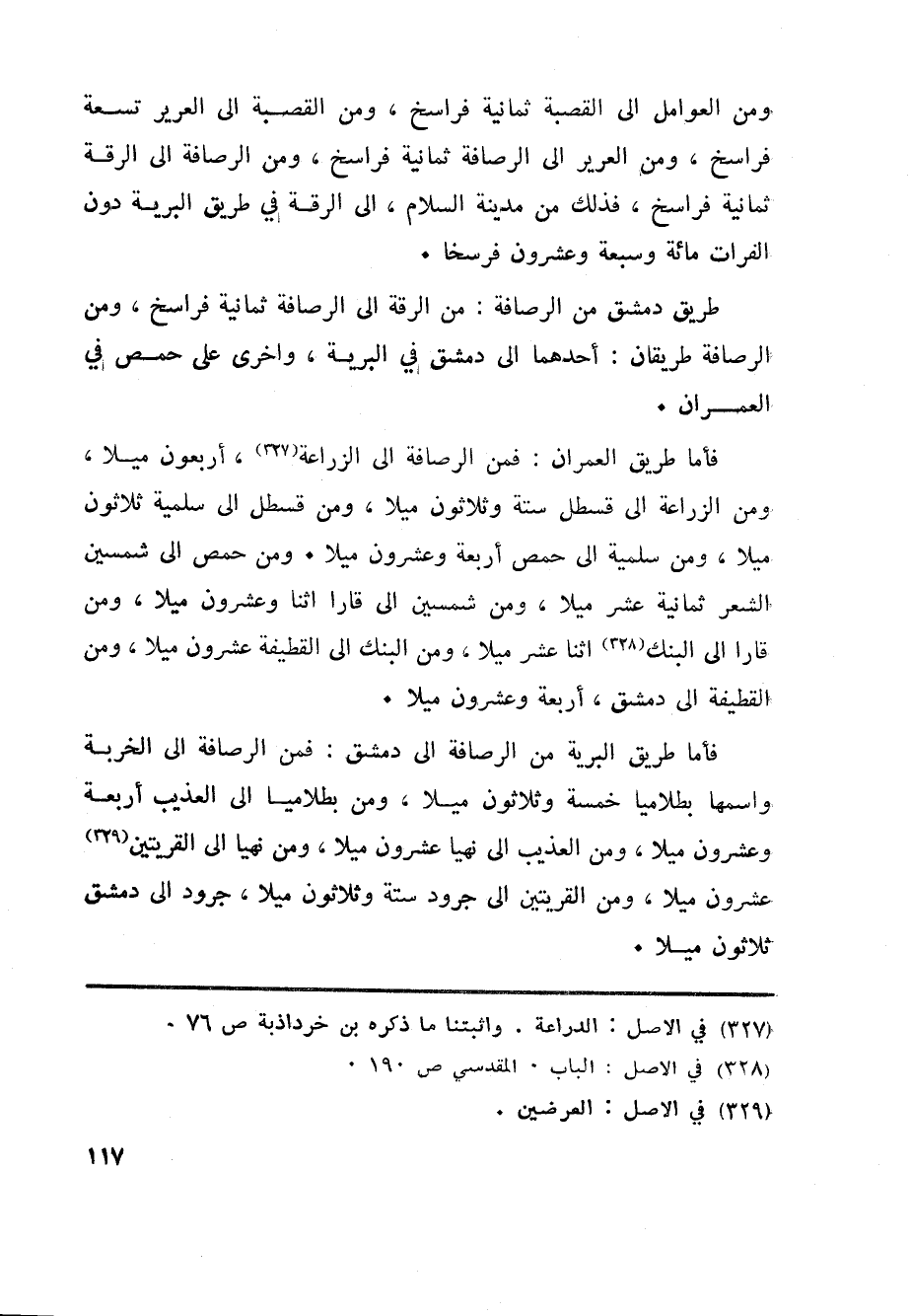 فأما طريق العمران: فمن الرصافة الى الزراعة32»
