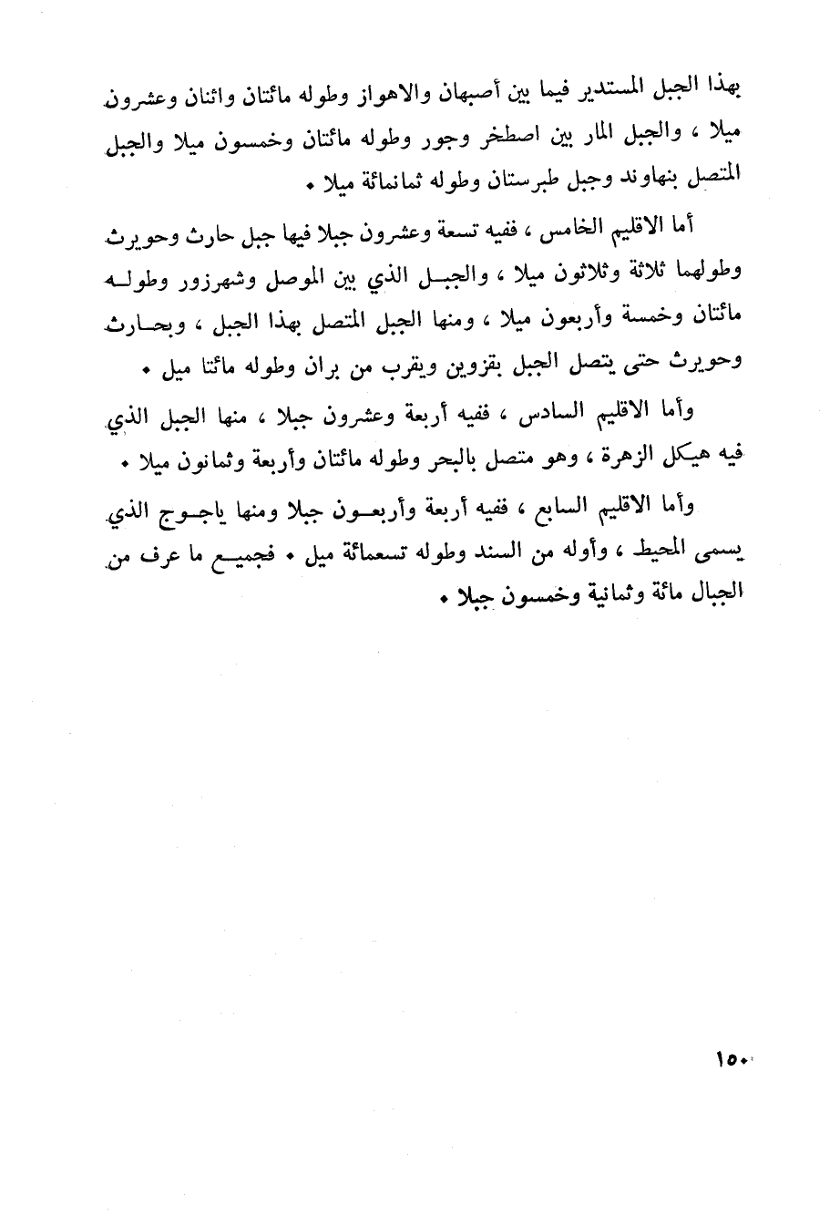 بهذا الجبل المستدير فيما بين أصبهان والاهواز وطوله مائتان واثنان وعشرون ميلا، والجبل المار بين اصطخر وجور وطوله مائتان وخمسون ميلا والجبل المتصل بنهاوند وجبل طبرستان وطوله ثمانمائة ميلا.