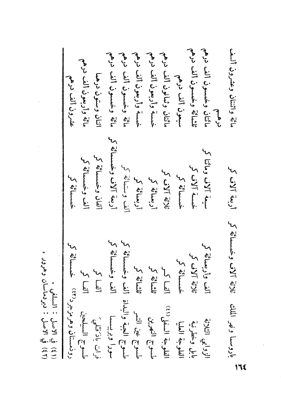بابل وخطرنية: ثلاثة آلاف كر: خمسة آلاف كر: ثلثمائة وخمسون ألف درهم:
