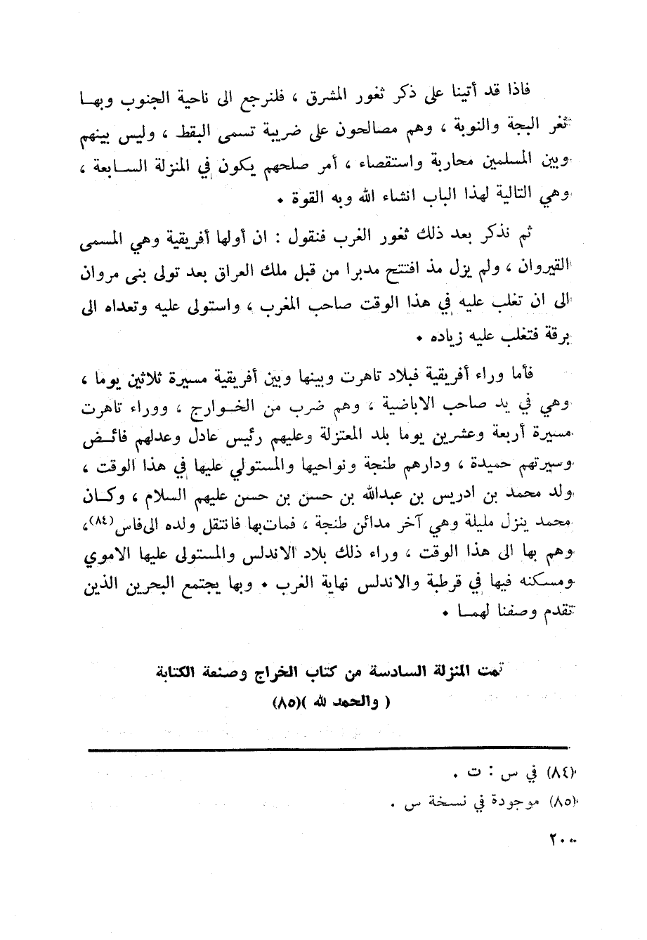 تمت المنزلة السادسة من كتاب الخراج وصنعة الكتابة (والحمد لله) «85»
