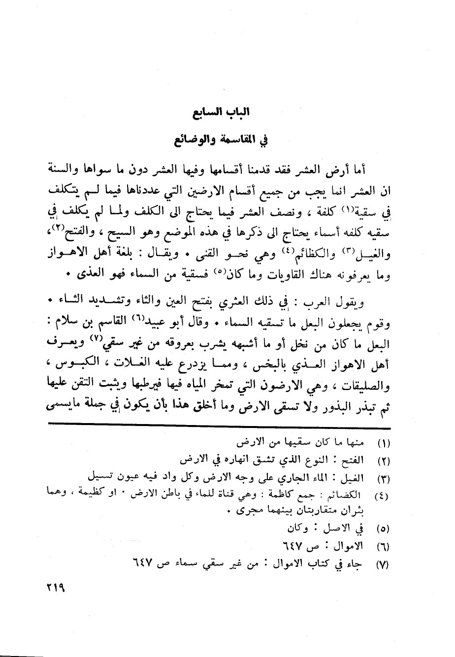 الباب السابع في المقاسمة والوضائع