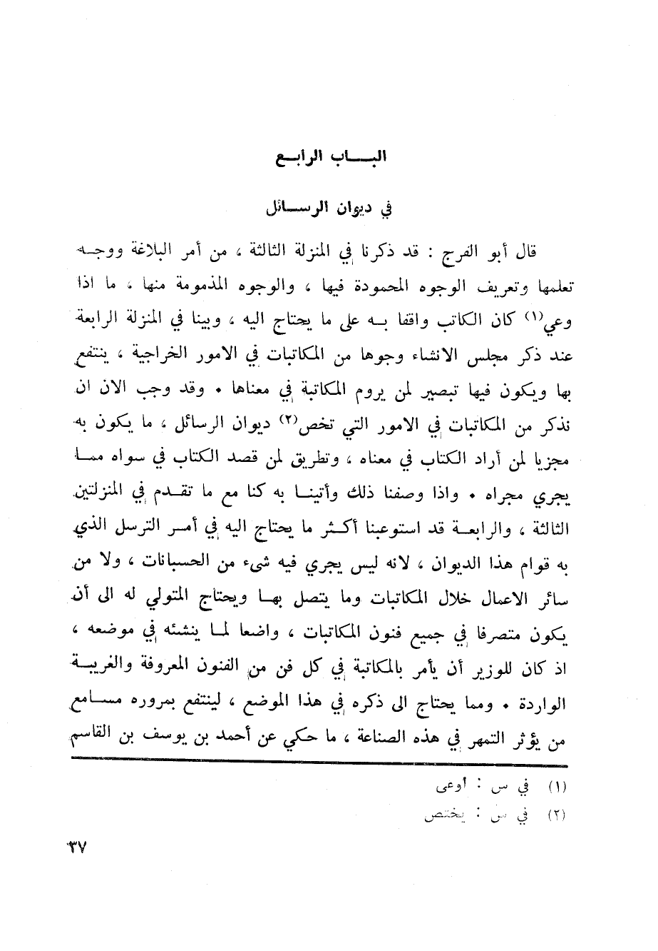 الباب الرابع في ديوان الرسائل