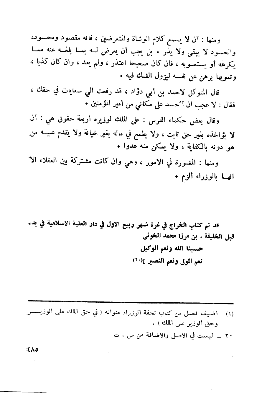 قد تم كتاب «1» الخراج في غرة شهر ربيع الاول في دار العلية الاسلامية في بدء قبل الخليقة، بن مرزا محمد الخوئي