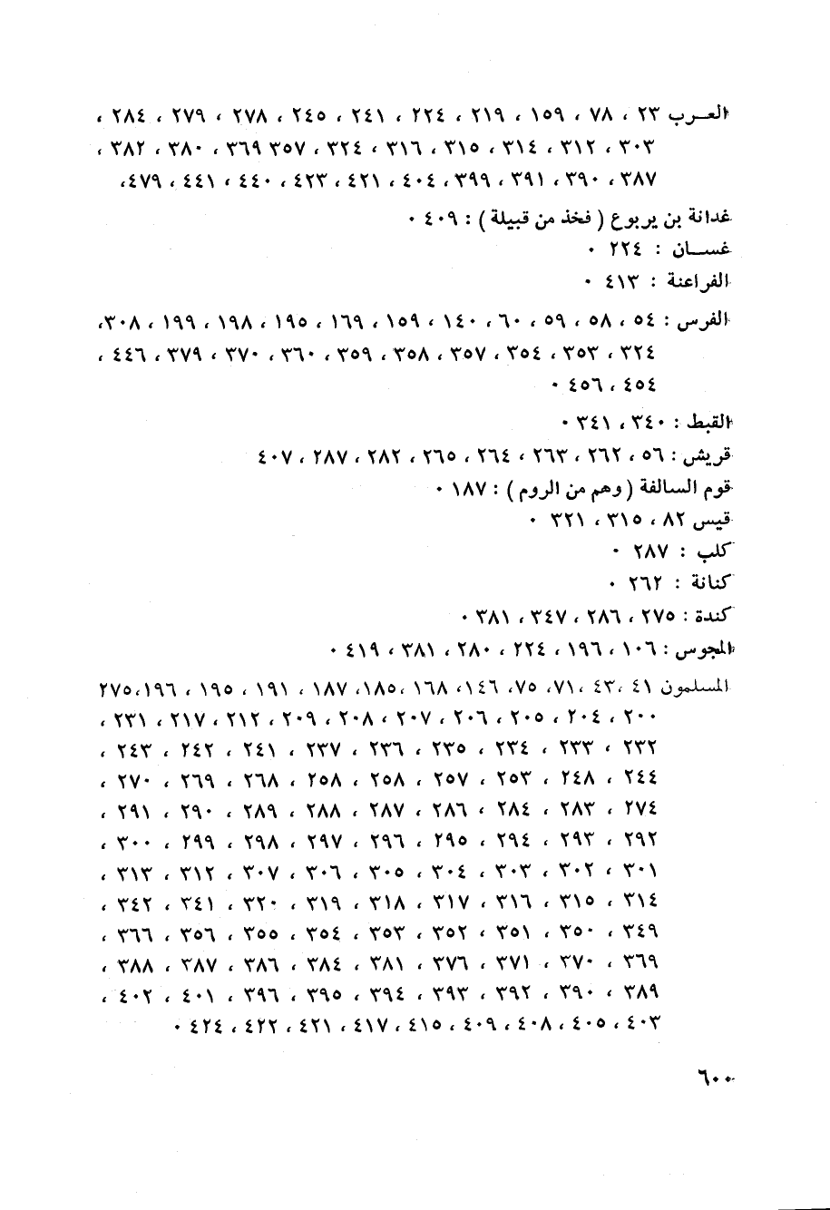 العرب 23، 78، 159، 219، 224، 241، 245، 278، 279، 284، 303، 312، 314، 315، 316، 324، 357 369، 380، 382، 387، 390، 391، 399، 404، 421، 423، 440، 441، 479،