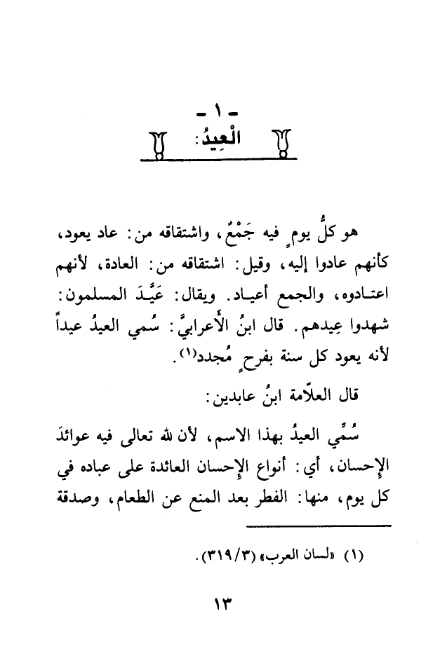 سُمِّي العيدُ بهذا الاسم، لأن لله تعالى فيه عوائدَ الِإحسان، أي: أنواع الِإحسان العائدة على عباده في كل يوم، منها: الفطر بعد المنع عن الطعام، وصدقة
