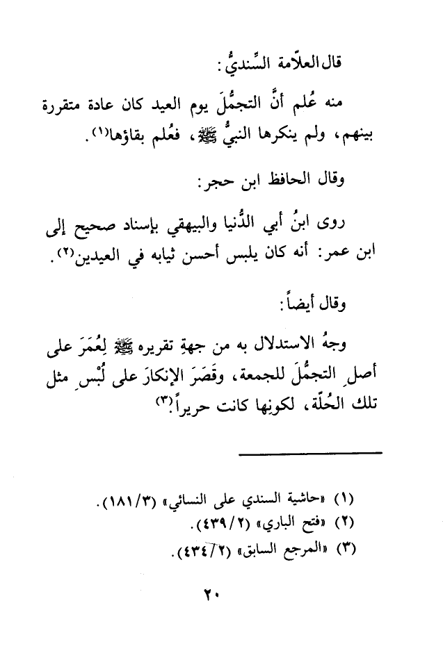 منه عُلم أنَّ التجمُّلَ يوم العيد كان عادة متقررة بينهم، ولم ينكرها النبى - صلى الله عليه وسلم - فعُلم بقاؤها (1) .