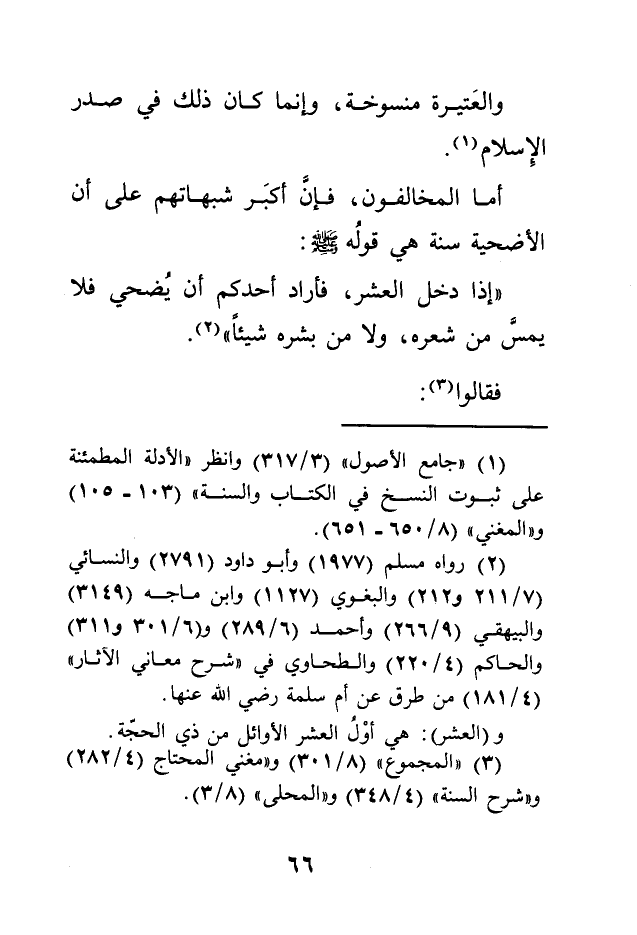 أما المخالفون، فإنّ أكبَر شبهاتهم على أن الأضحية سنة هي قولُه - صلى الله عليه وسلم -: