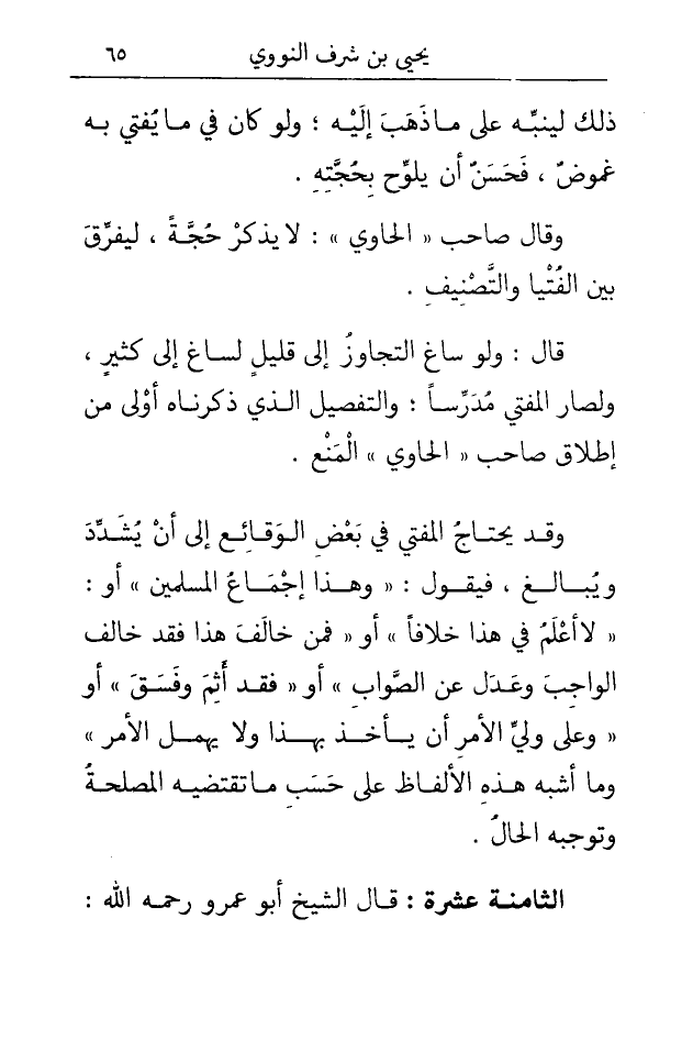 الثَّامِنَة عشرَة قَالَ الشَّيْخ أَبُو عَمْرو رَحمَه الله