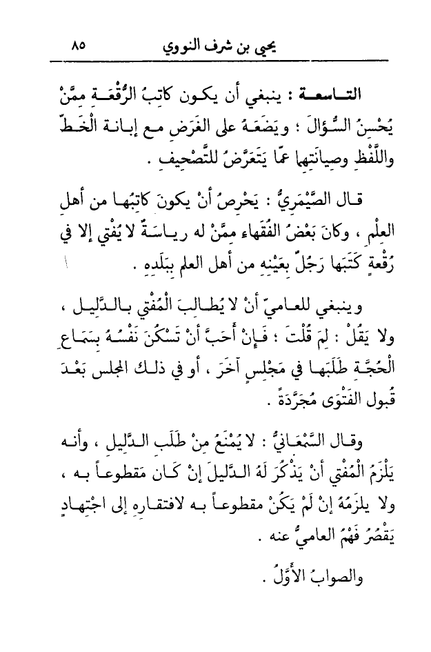 التَّاسِعَة يَنْبَغِي أَن يكون كَاتب الرقعة مِمَّن يحسن السُّؤَال ويضعه على الْغَرَض مَعَ إبانة الْخط وَاللَّفْظ وصيانتهما عَمَّا يتَعَرَّض للتصحيف