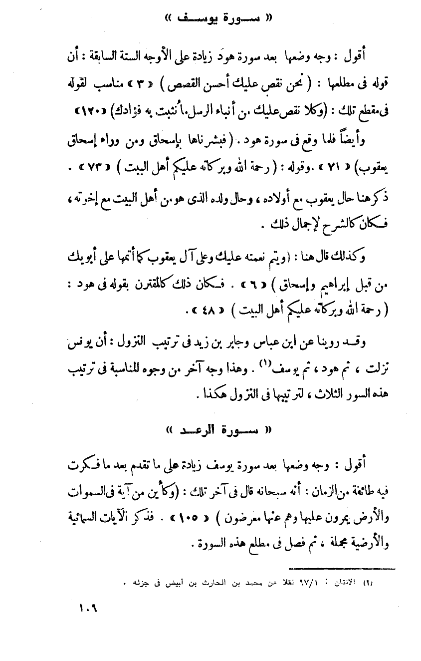 وقد روينا عن ابن عباس وجابر بن زيد في ترتيب النزول أن يونس نزلت ثم هود ثم يوسف وهذا وجه آخر من وجوه المناسبة في ترتيب هذه السور الثلاث لترتيبها في النزول هكذا