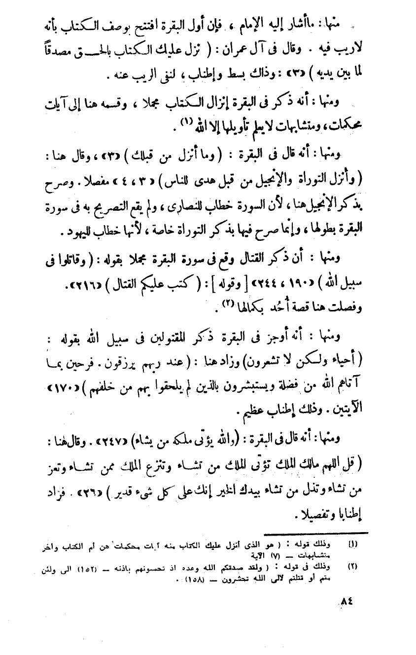 ومنها أن ذكر القتال وقع في سورة البقرة مجملا بقوله وقاتلوا في سبيل الله 190 244 وقوله كتب عليكم القتال 216 وفصلت هنا قصة أحد بكمالها