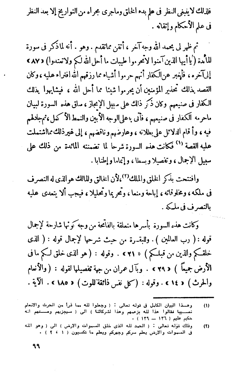 وكانت هذه السورة بأسرها متعلقة بالفاتحة من وجه كونها شارحة لإجمال قوله رب العالمين وللبقرة من حيث شرحها لإجمال قوله الذي خلقكم والذين من قبلكم 21 وقوله هو الذي خلق لكم ما في الأرض جميعا 29 وبآل عمران من جهة تفصيلها لقوله والأنعام والحرث 14 وقوله كل نفس ذائقة الموت 185 الآية