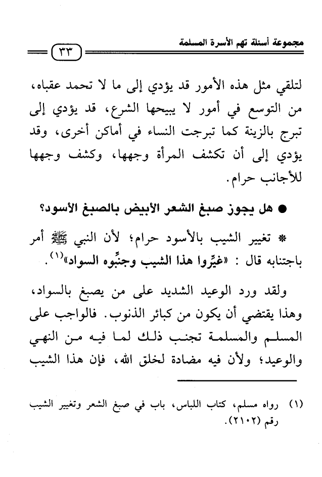 1 رواه مسلم كتاب اللباس، باب في صبغ الشعر وتغيير الشيب رقم 2102