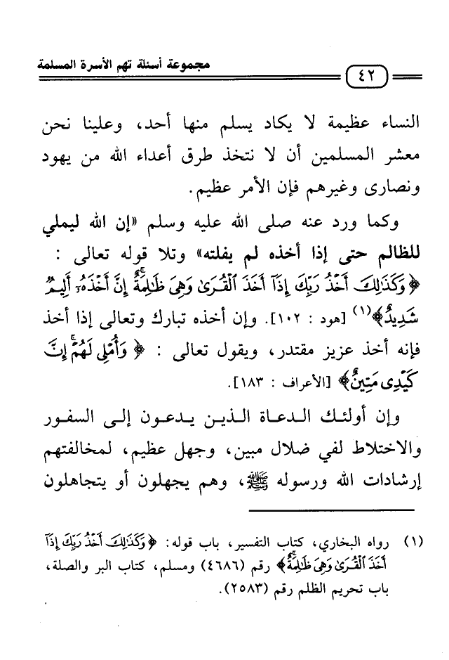 1 رواه البخاري، كتاب التفسير باب قوله: "وكذلك أخذ ربك إذا أخذ القرى وهي ظالمة" رقم 4686 ومسلم كتاب البر والصلة، باب تحريم الظلم رقم 2583.