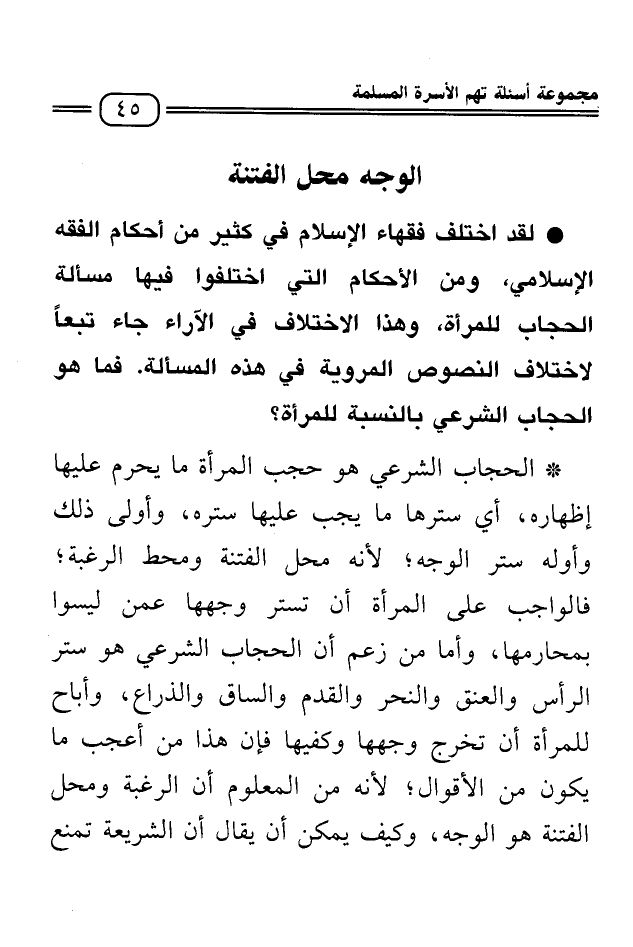 الوجه محل الفتنة