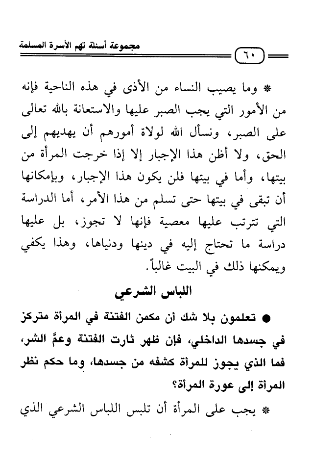 * يجب على المرأة أن تلبس اللباس الشرعي الذي